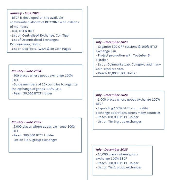 - About the ecosystem: BTCF has a strong ecosystem available as shared above, the highlight of the project is that BTCF has unlimited scalability around the world. Because BTCF is a commodity exchange application in life, the market demand is very large.
